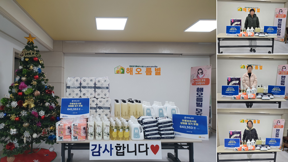 12월, ‘돌고 도네이션’을 통해 해오름빌 생활세대에 다양한 생필품을 지원하였습니다.